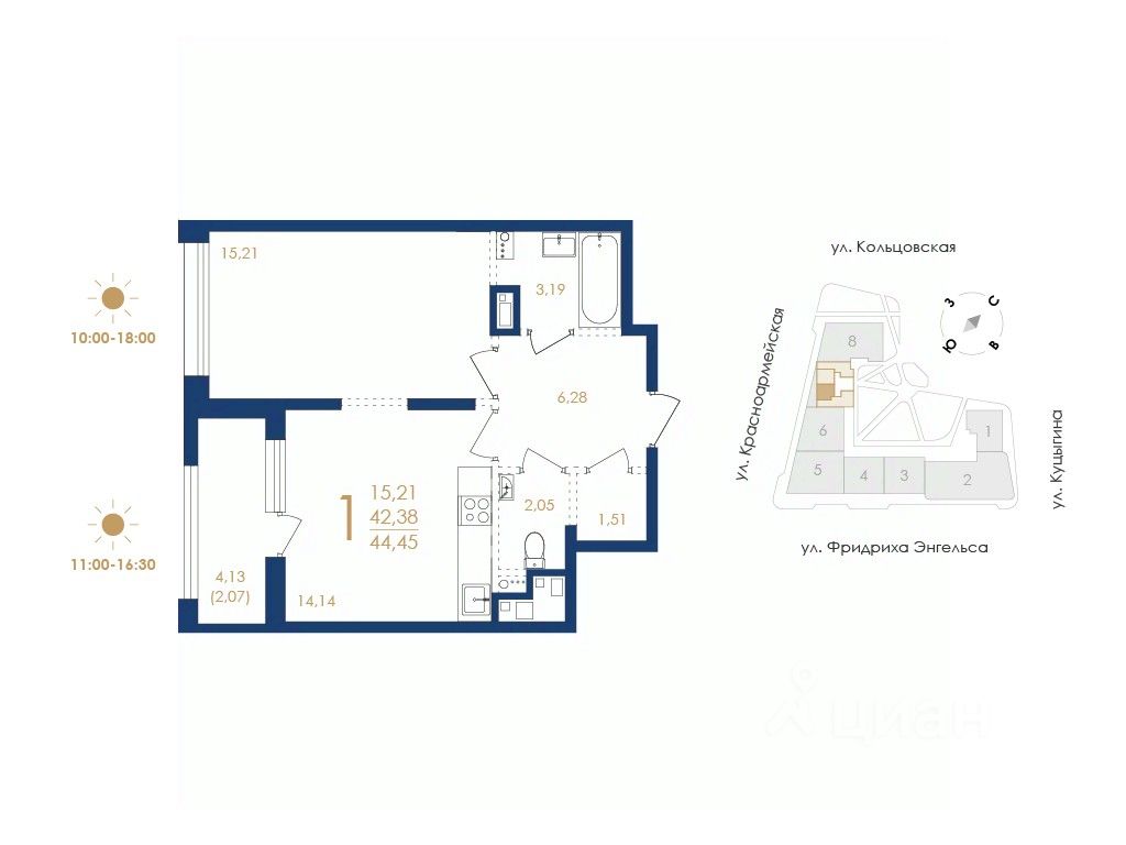 Строительная компания "ВЫБОР" предлагает купить однокомнатную квартиру в "Дом на Фридриха Энгельса" в Воронеже.