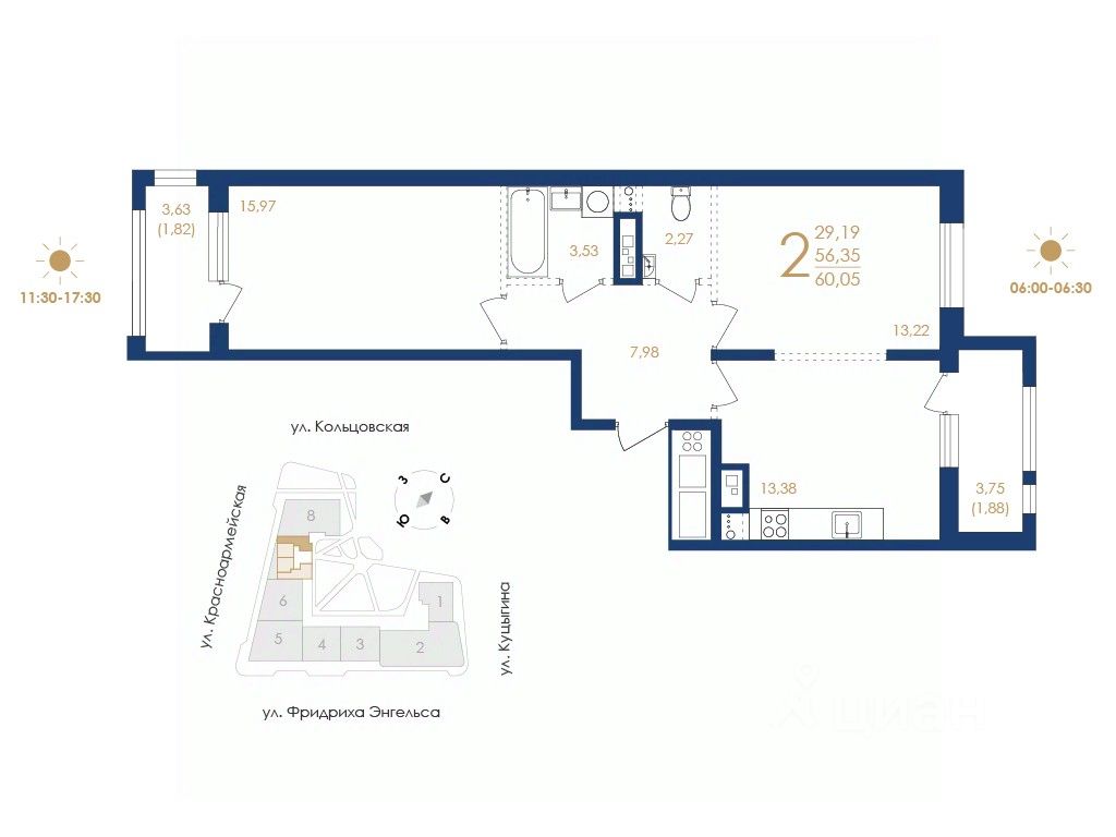 Строительная компания "ВЫБОР" предлагает купить двухкомнатную квартиру в "Дом на Фридриха Энгельса" в Воронеже.