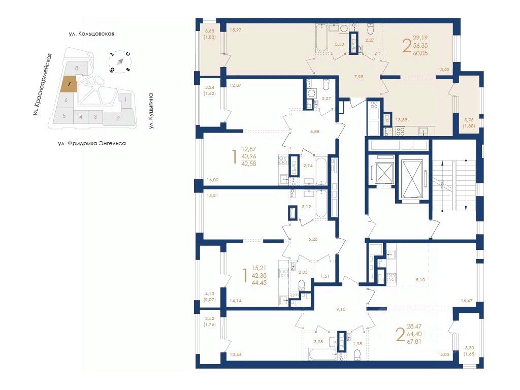 - Площадь квартир: от 29,89 до 127,29 кв. м