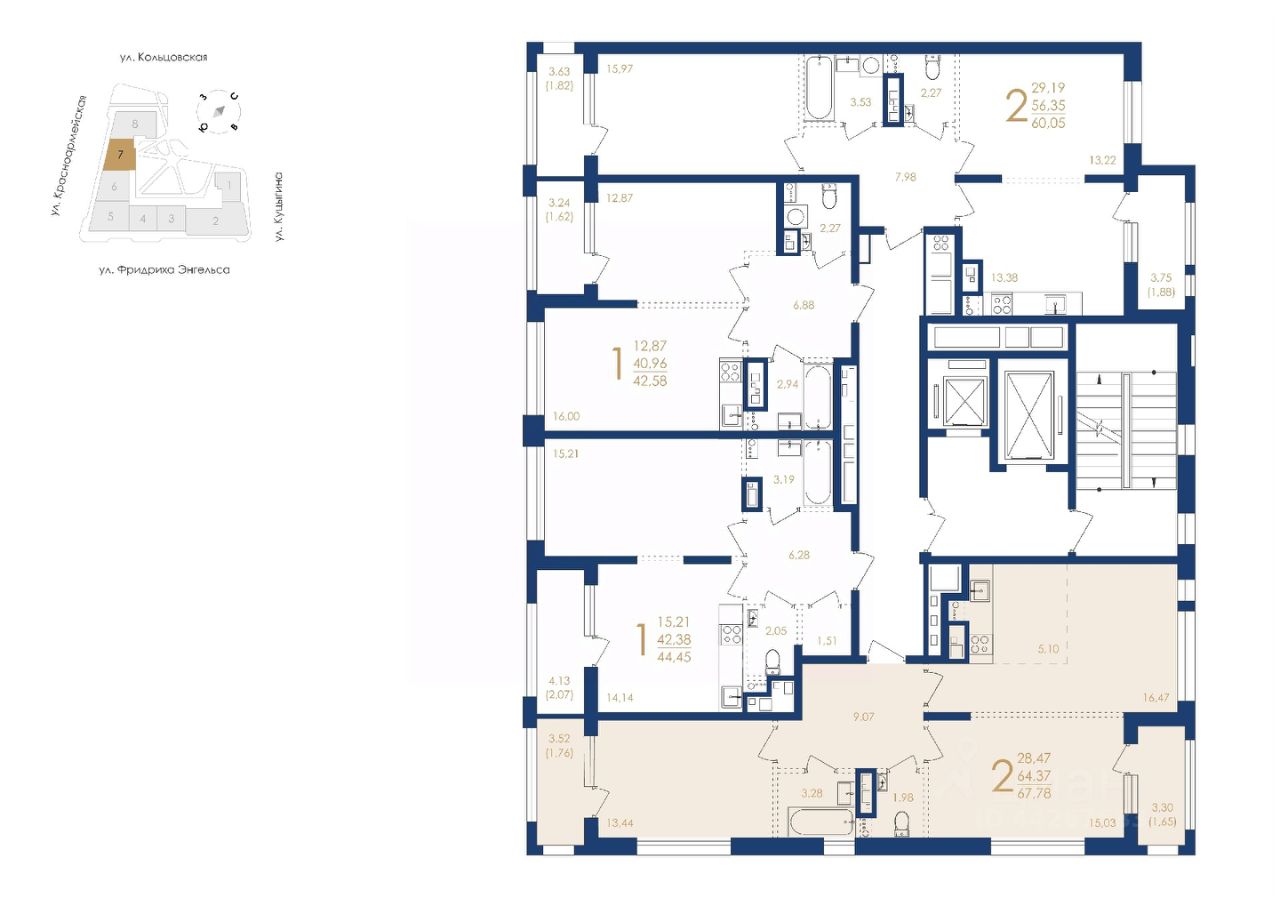 "Дом на Фридриха Энгельса" престижная локация с исключительной инфраструктурой. Особая атмосфера исторического центра. В жилом доме предусмотрено 8 секций, 309 эксклюзивных квартир по технологии монолитного домостроения - Переменная этажность: 6 17 - Площадь квартир: от 29,89 до 127,29 кв. м - Площадь террас: от 2,24 до 99,34 кв. м - Высота потолков в квартирах: 3,1 м - Свободные планировки, евроформат - Эксклюзивные решения (мастер-спальня с собственным выходом на террасу, ванная комната с видом на город) - Авторская архитектура - Концептуальное благоустройство, архитектурная подсветка - Премиальное лобби - Дизайнерские бесшумные лифты Meteor - Закрытая охраняемая территория - Высокий уровень безопасности, сервиса и приватности - Подземный 2-х уровневый паркинг (270 машино-мест) - Электрические зарядки для автомобилей - Кладовые - Ритейл на 1 этажах Трейд-ин. Действующие ипотечные ставки и акции уточняйте в офисе продаж застройщика. Услуга собственного менеджера по ипотечному кредитованию - удобная опция для клиентов компании. Специалисты обеспечат вам комфортные условия получения кредита и будут рядом на каждом этапе, возьмут на себя все взаимодействие с банком. Квартира от застройщика! Строительная компания "ВЫБОР" предлагает купить двухкомнатную квартиру в "Дом на Фридриха Энгельса" в Воронеже. Успей приобрести квартиру по выгодной цене! Строительная компания "ВЫБОР" — один из ведущих застройщиков в Центрально-Черноземном регионе. Квартиры в новостройках от застройщика.