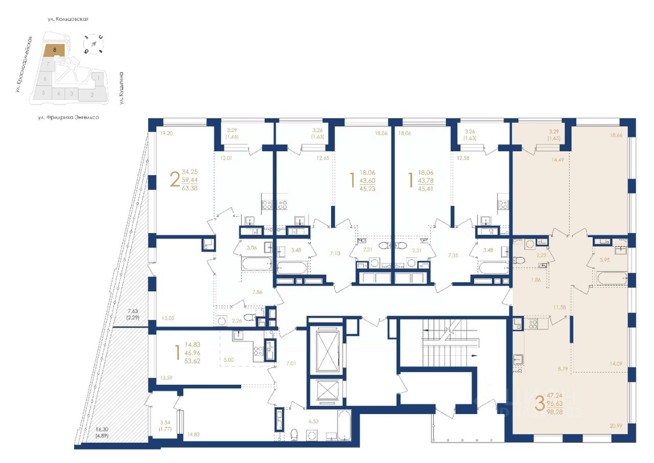 Строительная компания "ВЫБОР" предлагает купить трёхкомнатную квартиру в "Дом на Фридриха Энгельса" в Воронеже.
