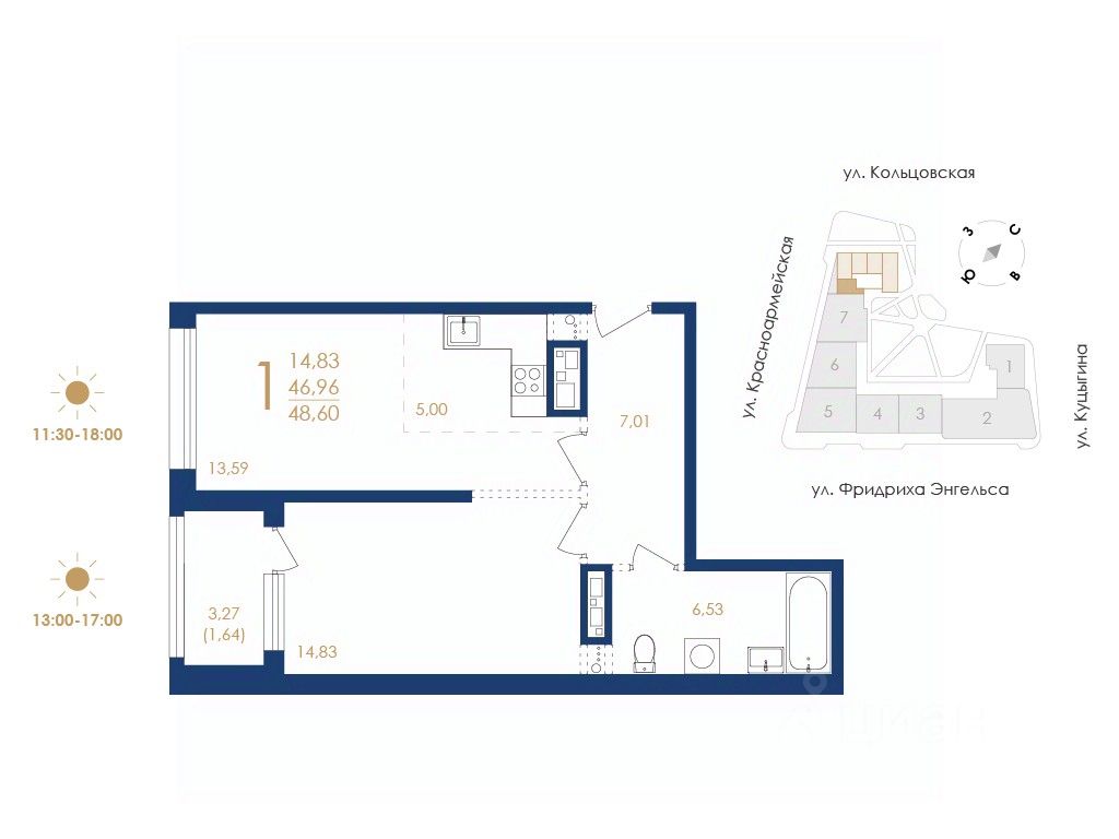 Строительная компания "ВЫБОР" предлагает купить однокомнатную квартиру в "Дом на Фридриха Энгельса" в Воронеже.
