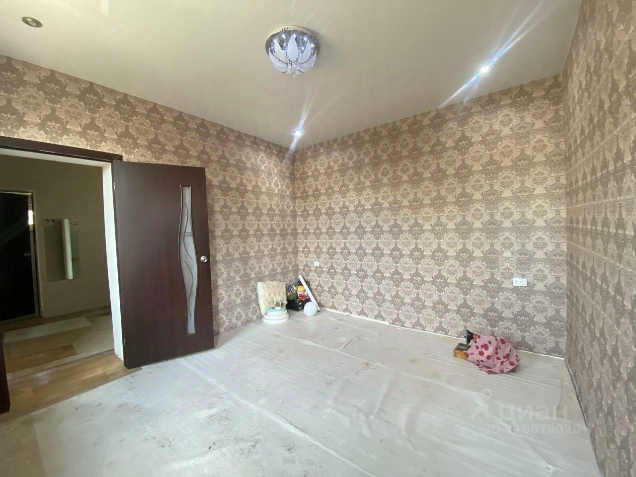 Выровнен потолок (в одной комнате натяжной).