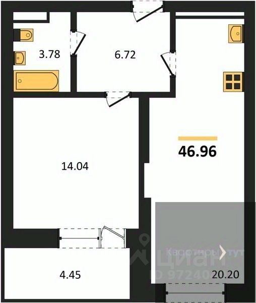 Квартира: 1 к 46,96 кв.м., 5 этаж в комплексе Дом у Ротонды, 1 очередь, корп.1, сдача: 4кв. , этажей: 28, адрес Воронеж г., Транспортная ул., д. 58, Застройщик: ГК ГРАД.