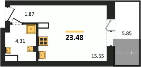 Студия: 23,48 кв.м., 8 этаж в комплексе Дом у Ротонды, 1 очередь, корп.1, сдача: 4кв. , этажей: 28, адрес Воронеж г., Транспортная ул., д. 58, Застройщик: ГК ГРАД.