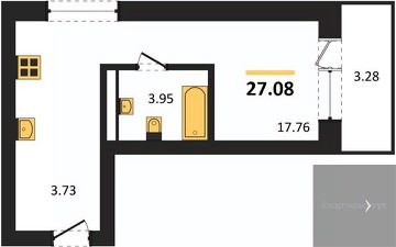 Студия: 27,08 кв.м., 12 этаж в комплексе Дом у Ротонды, 1 очередь, корп.1, сдача: 4кв. , этажей: 28, адрес Воронеж г., Транспортная ул., д. 58, Застройщик: ГК ГРАД.