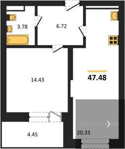 Квартира: 1 к 47,48 кв.м., 15 этаж в комплексе Дом у Ротонды, 1 очередь, корп.1, сдача: 4кв. , этажей: 28, адрес Воронеж г., Транспортная ул., д. 58, Застройщик: ГК ГРАД.
