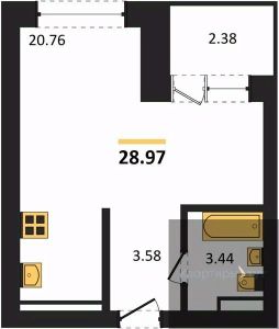 Студия: 28,97 кв.м., 14 этаж в комплексе Дом у Ротонды, 1 очередь, корп.1, сдача: 4кв. , этажей: 28, адрес Воронеж г., Транспортная ул., д. 58, Застройщик: ГК ГРАД.