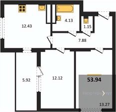 Квартира: 2 к 53,94 кв.м., 20 этаж в комплексе Дом у Ротонды, 1 очередь, корп.1, сдача: 4кв. , этажей: 28, адрес Воронеж г., Транспортная ул., д. 58, Застройщик: ГК ГРАД.
