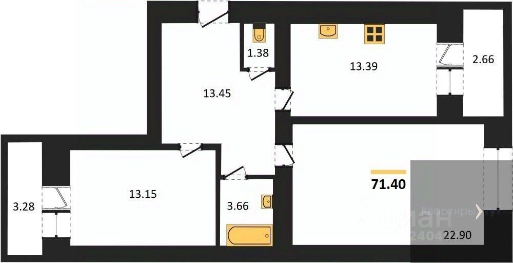Квартира: 2 к 71,40 кв.м., 13 этаж в комплексе Зеленая долина, 3 очередь, корп.8 (Секции 3,4), сдача: 2кв. , этажей: 16, адрес Воронеж г., Здоровья пер., д. 90г/1 к.1, Застройщик: Электронжилсоцстрой.