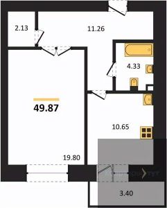 Квартира: 1 к 49,87 кв.м., 3 этаж в комплексе Зеленая долина, 5 очередь, корп.8 (секции 7, 8), сдача: 4кв. , этажей: 14, адрес Воронеж г., Здоровья пер., , Застройщик: Электронжилсоцстрой.