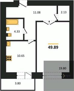 Квартира: 1 к 49,89 кв.м., 9 этаж в комплексе Зеленая долина, 5 очередь, корп.8 (секции 7, 8), сдача: 4кв. , этажей: 14, адрес Воронеж г., Здоровья пер., , Застройщик: Электронжилсоцстрой.