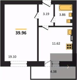 Квартира: 1 к 39,96 кв.м., 4 этаж в комплексе Александровский сад, 2 очередь, корп.3, сдача: 2кв. , этажей: 4, адрес Александровка село, Акварельная ул., , Застройщик: Еврострой.