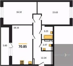 Квартира: 2 к 70,85 кв.м., 6 этаж в комплексе Победа, 2 очередь, корп.3, сдача: 1кв. , этажей: 8, адрес Новая Усмань село, Полевая ул., , Застройщик: ГК ГРАД.
