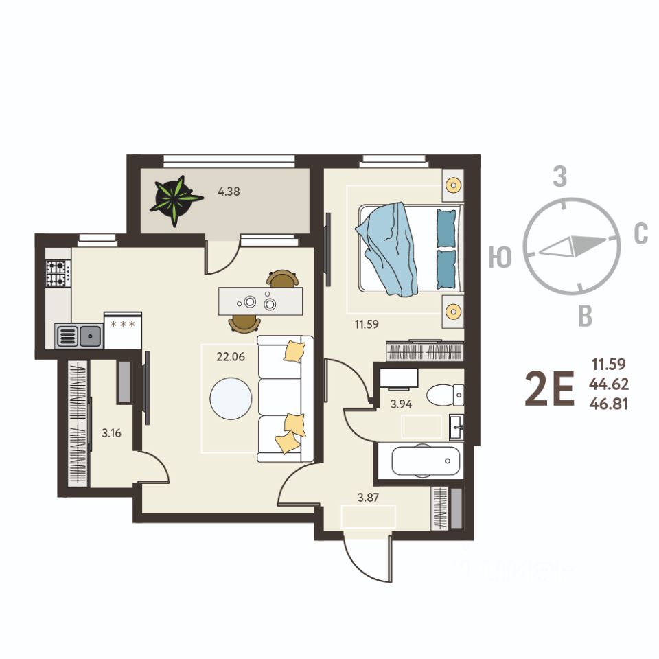 Продаётся 1-комнатная квартира в строящемся доме (Позиция 13), срок сдачи: IV-кв. 2025, общей площадью 46.81 кв.м., на 5 этаже. О ПРОЕКТЕ