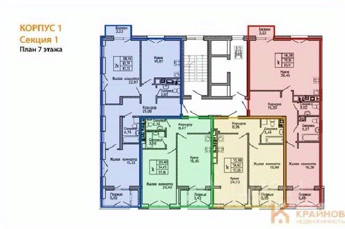 Квартира: 1 к 57,16 кв.м., 7 этаж в комплексе Клубный дом 905, 1 очередь, корп.1, сдача: 4кв. , этажей: 9, адрес Воронеж г., Революции 1905 года ул., д. 14, Застройщик: ГК Крайс.
