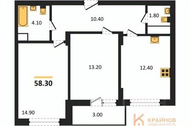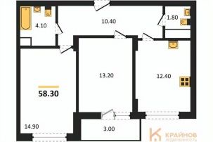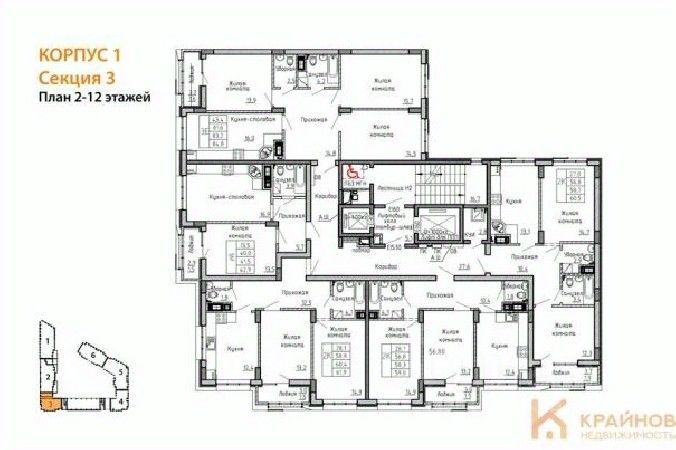 Квартира: 2 к 58,30 кв.м., 11 этаж в комплексе Джаз, 1 очередь, корп.1, сдача: 2кв. , этажей: 13, адрес Воронеж г., Содружества бул., д. 1, Застройщик: СЗ Комфортстрой.