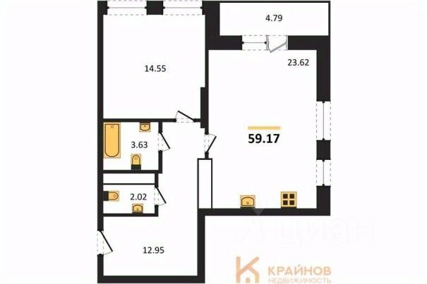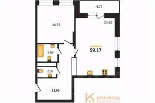 Квартира: 1 к 59,17 кв.м., 15 этаж в комплексе Галилей, 1 очередь, корп.3, сдача: 3кв. , этажей: 25, адрес Воронеж г., Кривошеина ул., д. 13/14, Застройщик: ГК Крайс.