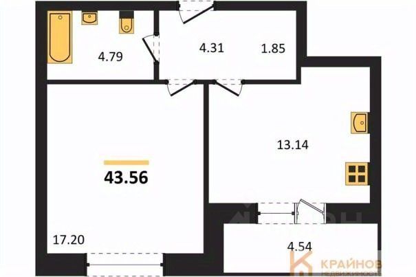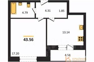 Квартира: 1 к 43,56 кв.м., 3 этаж в комплексе Галилей, 1 очередь, корп.1, сдача: 3кв. , этажей: 25, адрес Воронеж г., Кривошеина ул., д. 13/14, Застройщик: ГК Крайс.