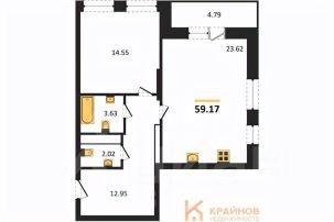 Квартира: 1 к 59,17 кв.м., 5 этаж в комплексе Галилей, 1 очередь, корп.1, сдача: 3кв. , этажей: 25, адрес Воронеж г., Кривошеина ул., д. 13/14, Застройщик: ГК Крайс.