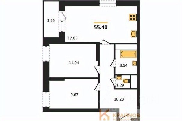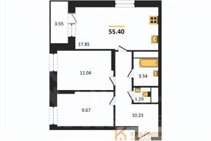 Квартира: 2 к 55,40 кв.м., 22 этаж в комплексе Галилей, 1 очередь, корп.2, сдача: 3кв. , этажей: 25, адрес Воронеж г., Кривошеина ул., д. 13/14, Застройщик: ГК Крайс.