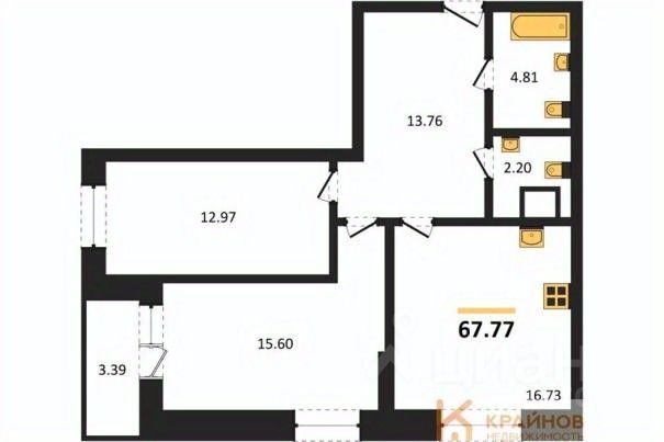 Квартира: 2 к 67,77 кв.м., 4 этаж в комплексе Галилей, 1 очередь, корп.2, сдача: 3кв. , этажей: 25, адрес Воронеж г., Кривошеина ул., д. 13/14, Застройщик: ГК Крайс.