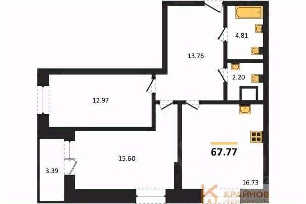 Квартира: 2 к 67,77 кв.м., 16 этаж в комплексе Галилей, 1 очередь, корп.2, сдача: 3кв. , этажей: 25, адрес Воронеж г., Кривошеина ул., д. 13/14, Застройщик: ГК Крайс.