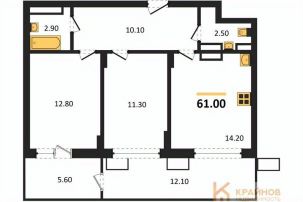 Квартира: 2 к 61,00 кв.м., 1 этаж в комплексе Ключи CLUB, 2 очередь, корп.2, сдача: 2кв. , этажей: 14, адрес Воронеж г., Остужева ул., д. 52/5, Застройщик: Новый код.