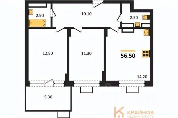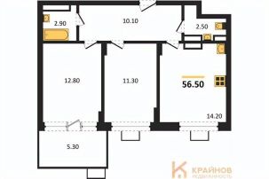 Квартира: 2 к 56,50 кв.м., 2 этаж в комплексе Ключи CLUB, 2 очередь, корп.2, сдача: 2кв. , этажей: 14, адрес Воронеж г., Остужева ул., д. 52/5, Застройщик: Новый код.