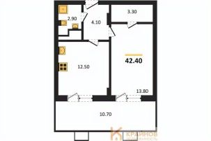 Квартира: 1 к 42,80 кв.м., 7 этаж в комплексе Ключи CLUB, 2 очередь, корп.2, сдача: 2кв. , этажей: 14, адрес Воронеж г., Остужева ул., д. 52/5, Застройщик: Новый код.