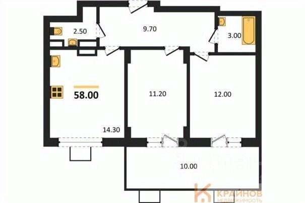 Квартира: 2 к 58,00 кв.м., 2 этаж в комплексе Ключи CLUB, 2 очередь, корп.2, сдача: 2кв. , этажей: 14, адрес Воронеж г., Остужева ул., д. 52/5, Застройщик: Новый код.