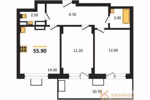 Квартира: 2 к 55,90 кв.м., 14 этаж в комплексе Ключи CLUB, 2 очередь, корп.2, сдача: 2кв. , этажей: 14, адрес Воронеж г., Остужева ул., д. 52/5, Застройщик: Новый код.