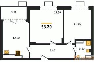 Квартира: 2 к 53,20 кв.м., 4 этаж в комплексе Ключи CLUB, 2 очередь, корп.2, сдача: 2кв. , этажей: 14, адрес Воронеж г., Остужева ул., д. 52/5, Застройщик: Новый код.