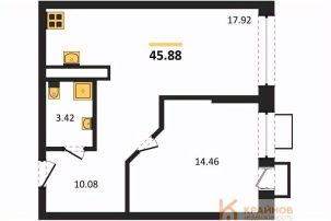 Квартира: 1 к 45,88 кв.м., 3 этаж в комплексе Z-town, 2 очередь, корп.2, сдача: 3кв. , этажей: 21, адрес Воронеж г., Чуева наб., д. 7, Застройщик: Новый код.