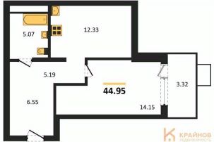 Квартира: 1 к 44,95 кв.м., 13 этаж в комплексе Z-town, 2 очередь, корп.2, сдача: 3кв. , этажей: 21, адрес Воронеж г., Чуева наб., д. 7, Застройщик: Новый код.
