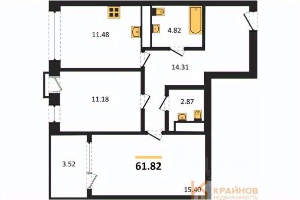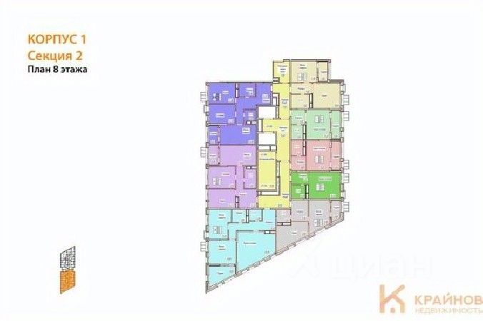 Квартира: 2 к 61,82 кв.м., 8 этаж в комплексе Z-town, 1 очередь, корп.1, сдача: 2кв. , этажей: 21, адрес Воронеж г., Чуева наб., д. 7, Застройщик: Новый код.