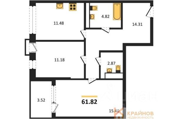 Квартира: 2 к 61,82 кв.м., 14 этаж в комплексе Z-town, 1 очередь, корп.1, сдача: 2кв. , этажей: 21, адрес Воронеж г., Чуева наб., д. 7, Застройщик: Новый код.