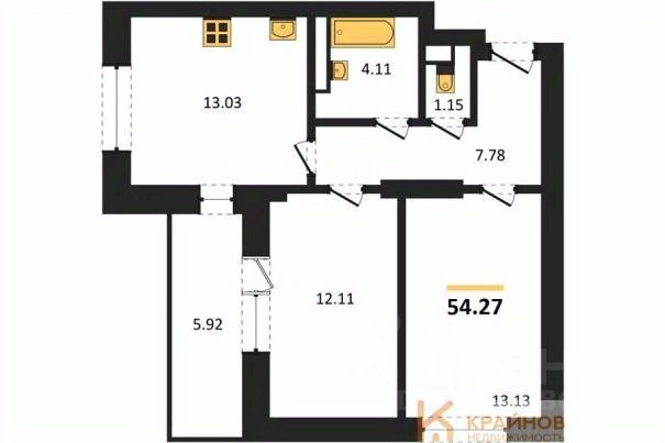 Квартира: 2 к 54,27 кв.м., 15 этаж в комплексе Дом у Ротонды, 1 очередь, корп.1, сдача: 4кв. , этажей: 28, адрес Воронеж г., Транспортная ул., д. 58, Застройщик: ГК ГРАД.