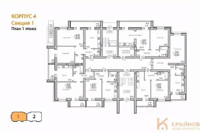 Квартира: 1 к 45,65 кв.м., 1 этаж в комплексе Александровский сад, 2 очередь, корп.4, сдача: 2кв. , этажей: 4, адрес Александровка село, Акварельная ул., , Застройщик: Еврострой.