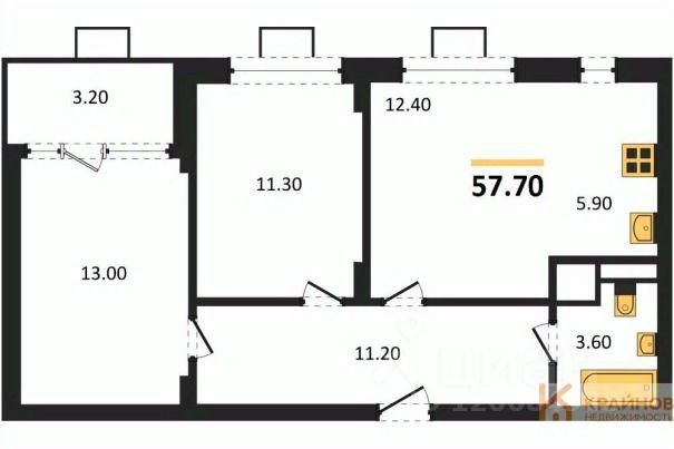Квартира: 2 к 58,10 кв.м., 13 этаж в комплексе Ключи CLUB, 2 очередь, корп.2, сдача: 2кв. , этажей: 14, адрес Воронеж г., Остужева ул., д. 52/5, Застройщик: Новый код.