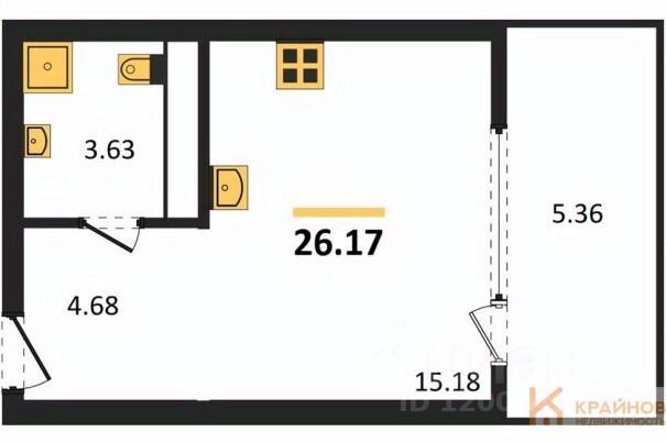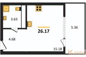 Студия: 26,17 кв.м., 2 этаж в комплексе Z-town, 1 очередь, корп.1, сдача: 2кв. , этажей: 21, адрес Воронеж г., Чуева наб., д. 7, Застройщик: Новый код.