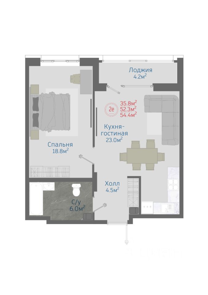 Квартира спроектирована с учётом современного стиля жизни и тенденций. Небольшой холл, переходящий в большую кухню-гостиную, которая позволит с комфортом принимать гостей и весело проводить время. Удобная большого размера спальня. Выход на лоджию из кухни. Увеличенные видовые окна., ПСК 4.6%19.9%.