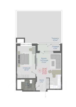 Просторная кухня-гостиная, Удобная планировка, Прихожая с отдельной гардеробной комнатой, Санузел удобной прямоугольной формы, Выход на большого размера лоджию из кухни