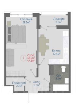 Комфортная квартира с классическим подходом к зонированию. Справа санузел, где запросто поместиться не только ванная и унитаз, но и стиральная машина. Слева отдельная гардеробная. Жилая комната и кухня имеют правильную прямоугольную форму. Выход на лоджию из кухни., ПСК 4.6%19.9%.