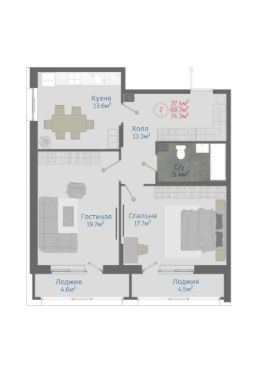 Общая площадь74,3 м²