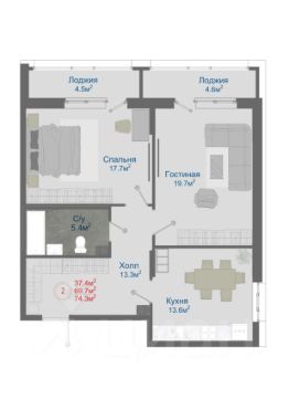 Общая площадь74,3 м²