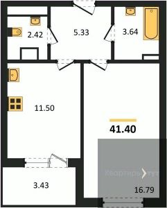 Квартира: 1 к 41,10 кв.м., 6 этаж в комплексе Городские сады, 2 очередь, корп.1, сдача: 4кв. , этажей: 18, адрес Воронеж г., Ломоносова ул., , Застройщик: ВДК.