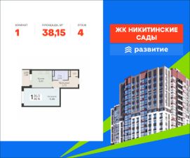 В продаже квартира площадью 38.15 кв. м с черновой отделкой. Квартира расположена на 4 этаже 20 этажного дома, в жилом комплексе комфорт-класса "Никитинские сады".