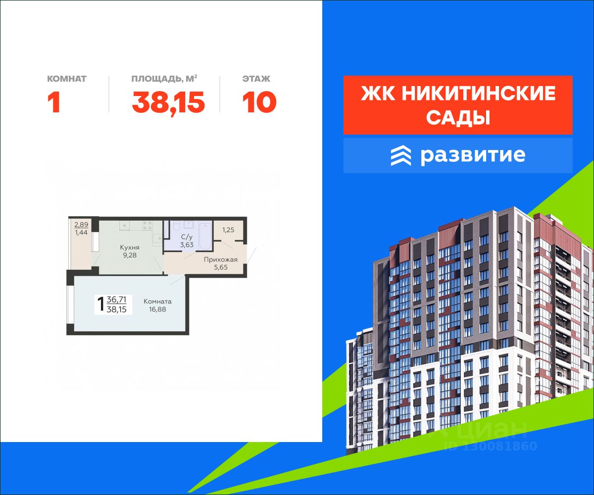В продаже квартира площадью 38.15 кв. м с отделкой. Квартира расположена на 10 этаже 20 этажного дома, в жилом комплексе комфорт-класса "Никитинские сады".