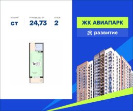 В продаже квартира площадью 24.73 кв. м с черновой отделкой. Квартира расположена на 2 этаже 15 этажного дома, в новом жилом квартале "Авиапарк".